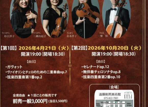 第1回:ガヴォット・ヴァイオリンとチェロのための2重奏曲・インテルメッツォ・弦楽四重奏曲第1番