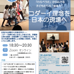 日本コダーイ協会主催 オンライン講座【コダーイ理念を日本の現場へ】 〜わらべうたから広がる 子どもたちの〝音楽力〟〜 自国の伝承歌(わらべうた)から音楽を学ぶ‥コダーイ教育の根幹となるこの考え方を学童期以降の読譜指導や合…